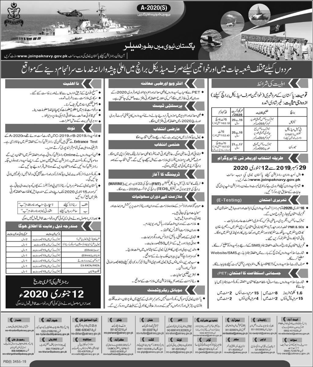 Here we will tell you about latest jobs annouced by the Pakistan Navy Jobs For Females as FMT Female Medical Technician -Apply Online to be filled immediately. Interested candidates can apply through this website or through proper channel as mentioned in the advertisement.Incomplete and late submissions/applications will not be entertained. Preference will be given to Only short listed candidates for selection process. No TA/DA will be admissible for Test/Interview.If you have need any info or help about this job then feel free to contact us via email or in comments box.You can also follow us on twitter an instagram and as well as on youtube.You can see all these link on the top right corner of this page. TO get further detail about this you can see the advertisement which given below.Last date to apply for this job post and submit application along with required documents is 12th jan 2020.
